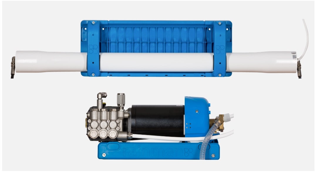 Single 10″ x 2.5″ non-proprietary 5 micron prefilter to remove sediment mounted on PSU |